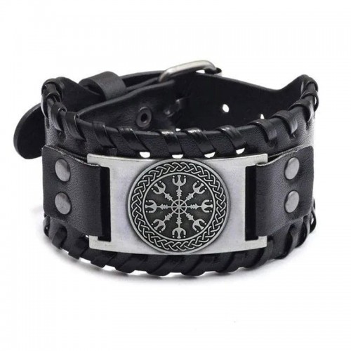 Браслет выполнен в стиле северной традиции. Он имеет черный ремешок из экокожи и украшен металлическим элементом с изображением Шлема ужаса. Этот аксессуар сочетает в себе элементы скандинавской мифологии и современного дизайна, что делает его уникальным и стильным. Браслет подойдет для тех, кто ценит оригинальные украшения.